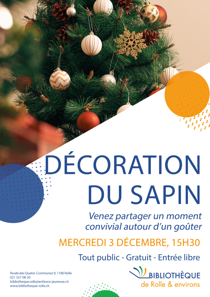 Viens décorer le sapin de Noël avec les bibliothécaires. Participe à un moment convivial et créatif en embellissant le sapin de la bibliothèque, puis partage un goûter festif avec nous.